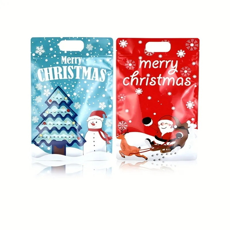 Geniş Uygulama Alanı: Stand-up çantalarımız çok yönlüdür ve Noel sezonunda çeşitli amaçlarla kullanılabilir.kurabiyelerEk olarak, küçük hediyeler, çorap dolguları ve hatta Noel temalı el sanatları veya aksesuarları gibi gıda dışı eşyalar da tutabilirler.