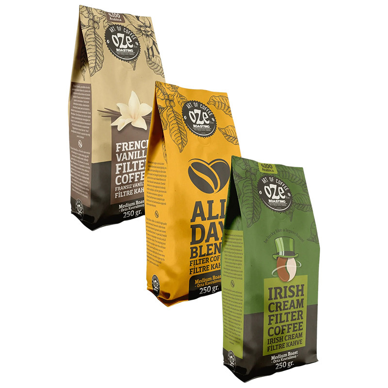 Paketleme torbalarımız gıda kalitesi malzemelerinden yapılır, tüm ürünler uluslararası kalite standartlarına uygun.Kağıt torbalar, ölçekli torbalar, kahve ambalajı, evcil hayvan yiyecek ambalajı kraft kağıt kutusu, rulo filmi ve diğer ambalajlar.